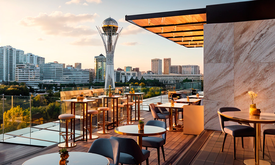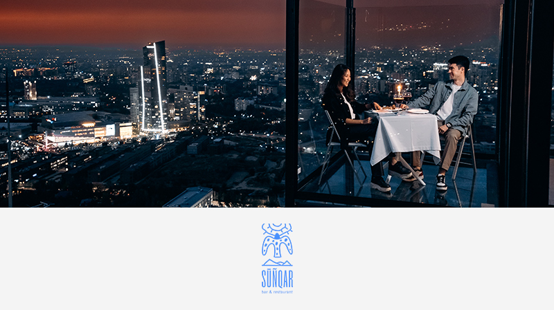 Поднимайтесь на трамплин Сункар, чтобы увидеть город с высоты птичьего полета и воспользуйтесь скидкой 10% при оплате премиальной картой Mastercard в ресторане современной казахской кухни Sunqar.